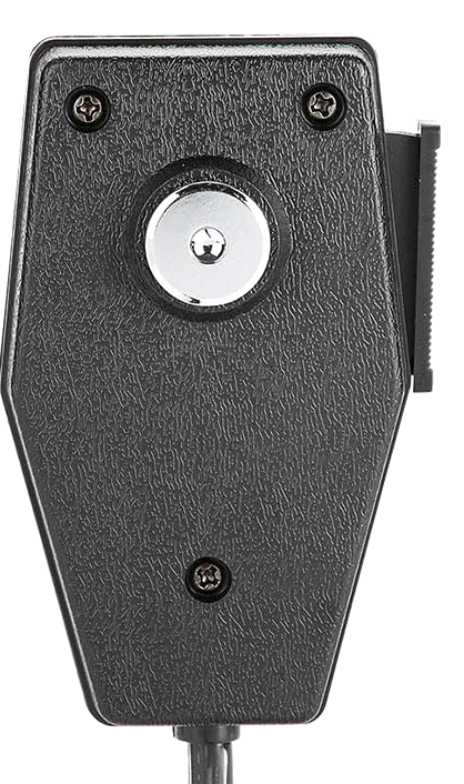 This microphone button is made of lightweight aluminum and is finished with a receive anodize coating.
