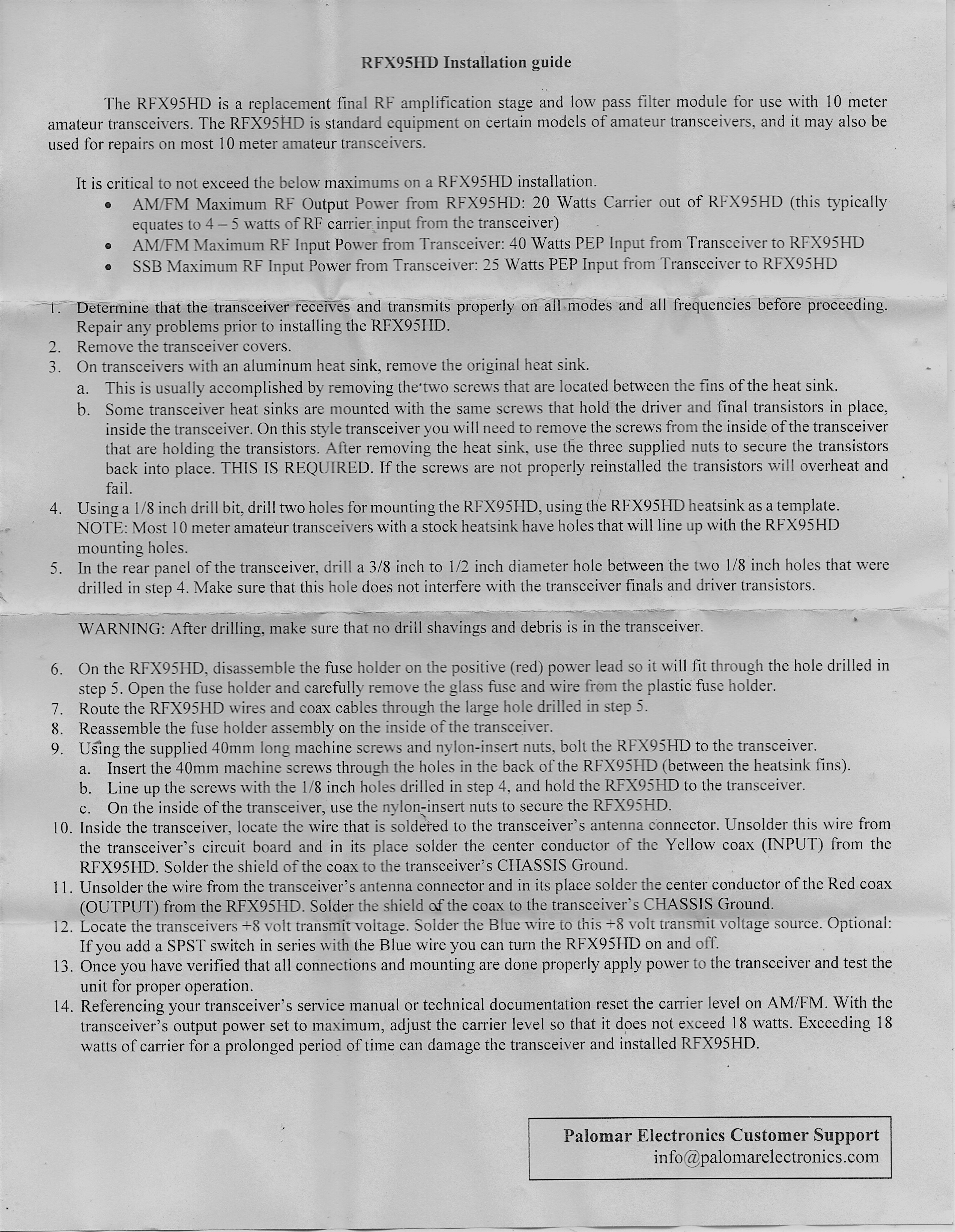 amplifier stage and low pass filter. The RFX95